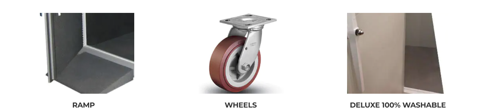 WHEELS: The wheels are a module that allows the S40 booth to be moved to another location without having to disassemble it.