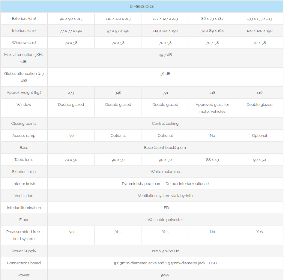 The B, C, E and F models have, as standard, the preinstallation necessary to carry out free-field tests with any audiometer on the market.