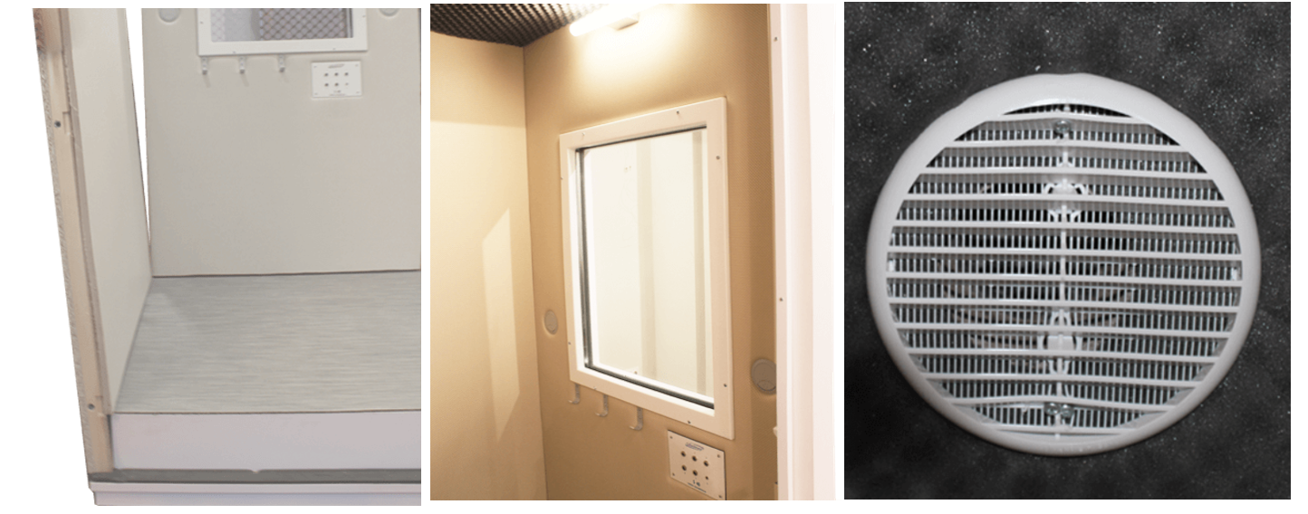 Ventilation system via labyrinth as standard. This system is based on a labyrinth built into the roof, which is covered with insulating material. It allows the booth to be ventilated while attenuating the sound transmission.