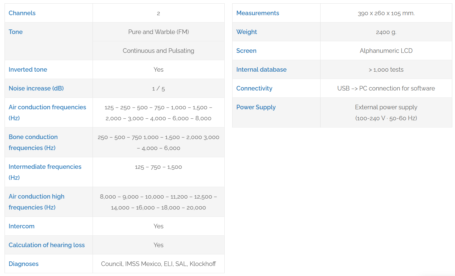 Allows audiometric explorations to be carried out in a reliable and effective way, both in determining hearing thresholds and screening tests as well as supraliminal tonal test.